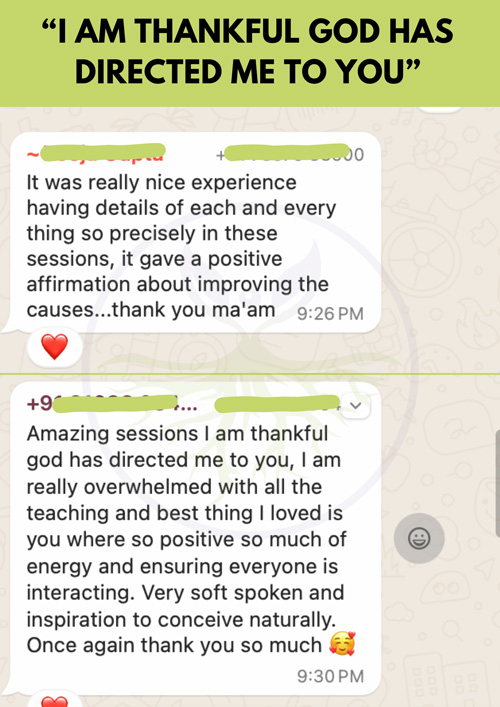As the Founder of Natural Fertility Intensive, she has successfully helped over 386+ women become pregnant naturally. Over the years, she has guided more than 1000+ women on their journey to healthy conception.